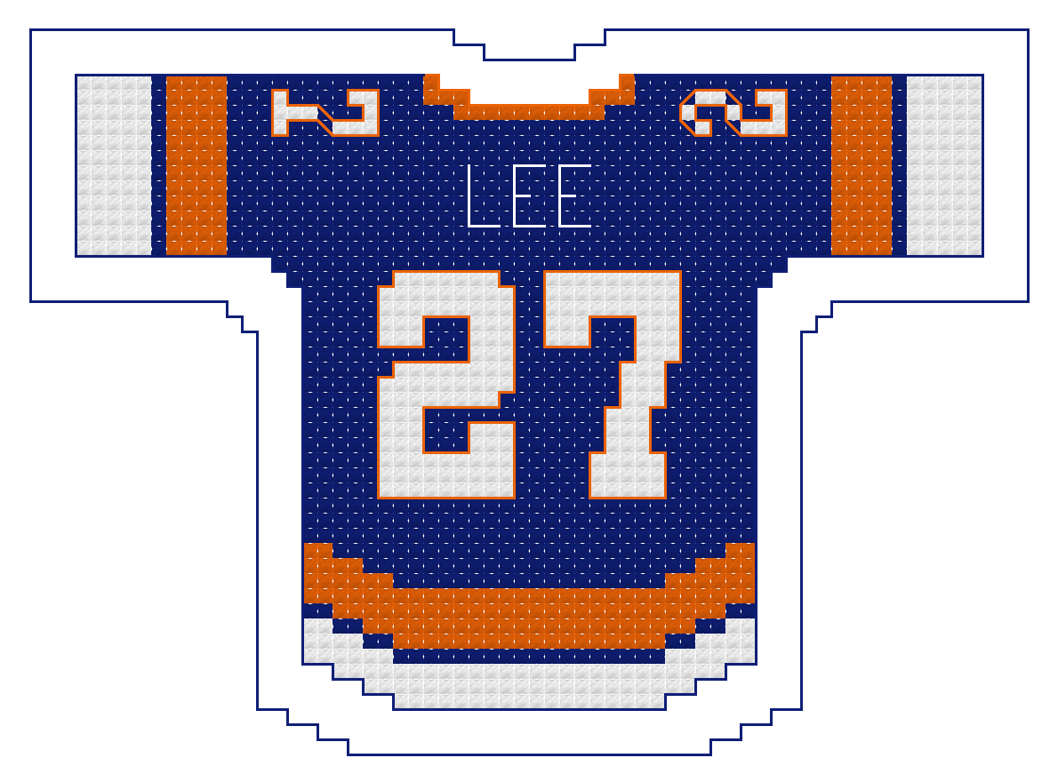 Any other current or past Islander created upon request. Contact FanStitches via the request form with your request. We’ll contact you when it’s available. Usually 2-3 business days