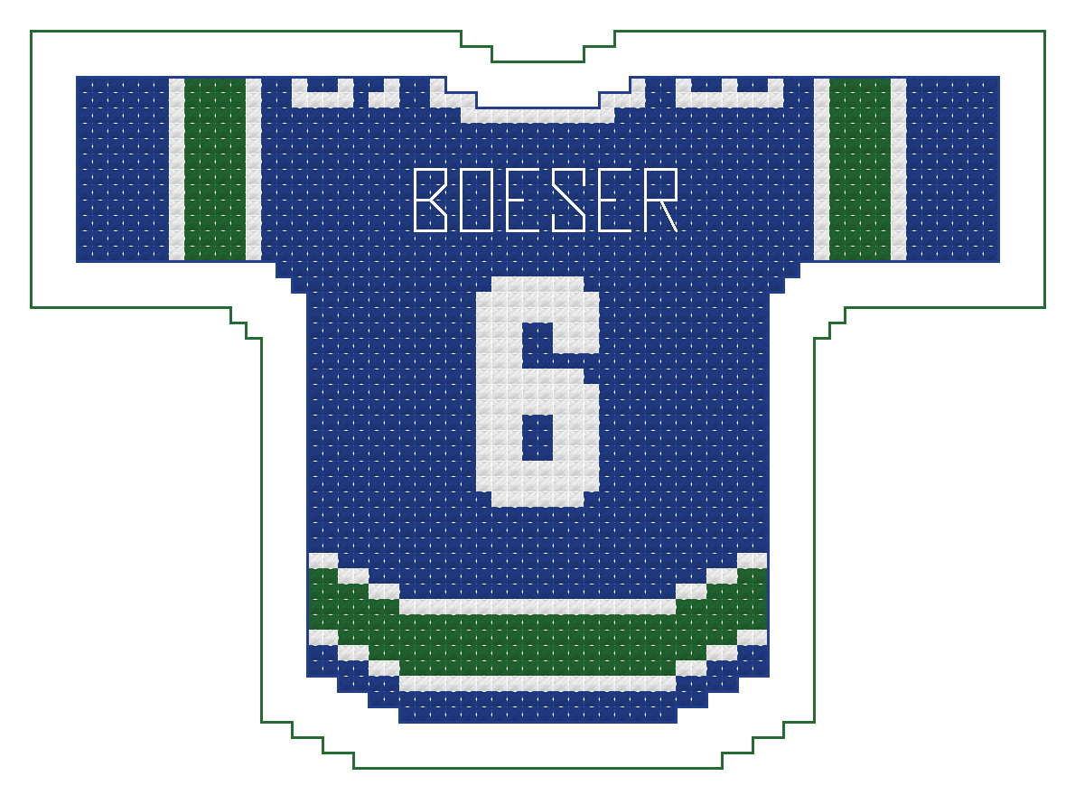 Any other current or past Canucks created upon request. Contact FanStitches via the request form with your request. We’ll contact you when it’s available. Usually 2-3 business days