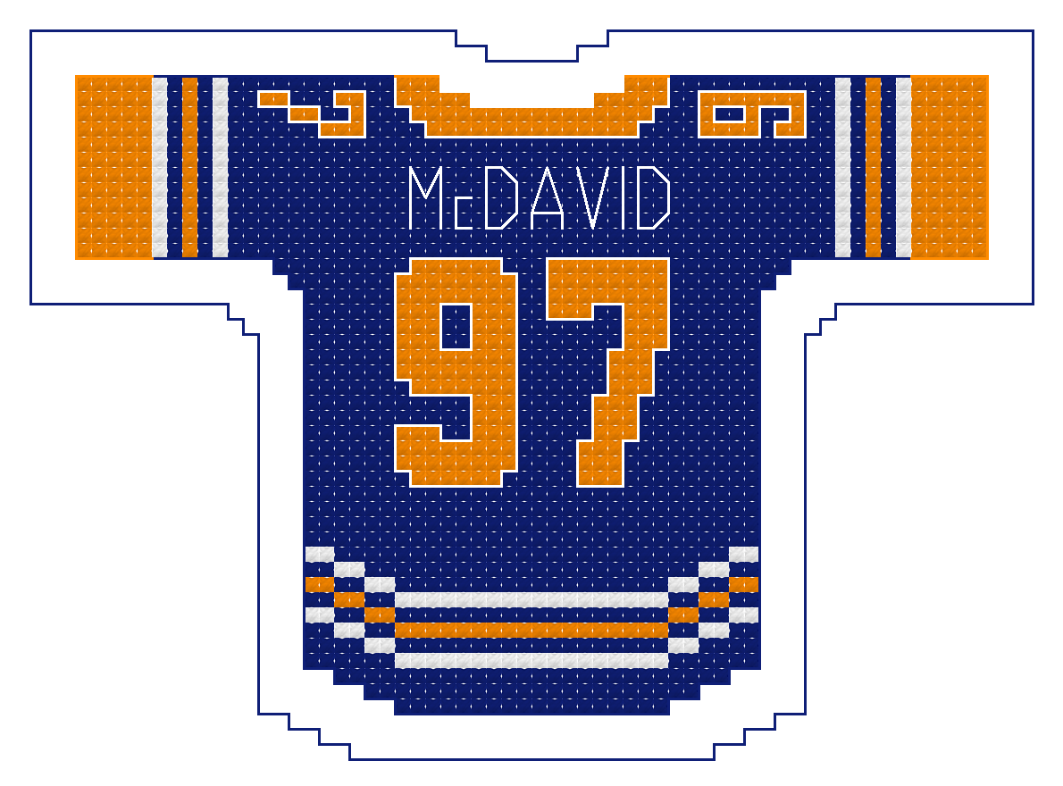Any other current or past Oiler created upon request. Contact FanStitches via the request form with your request. We’ll contact you when it’s available. Usually 2-3 business days