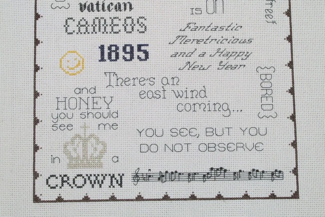 Finished size is 140w X 196h stitches; measurements will vary according to the count or size of actual medium used.